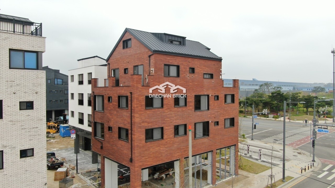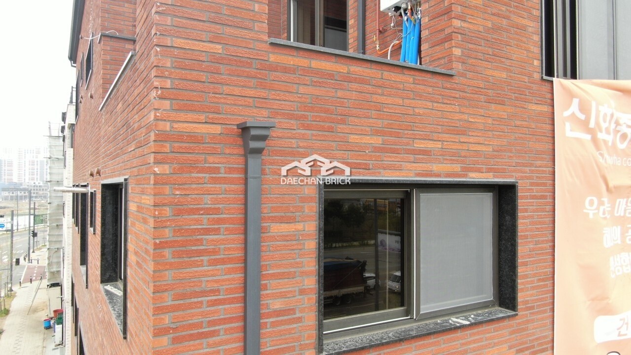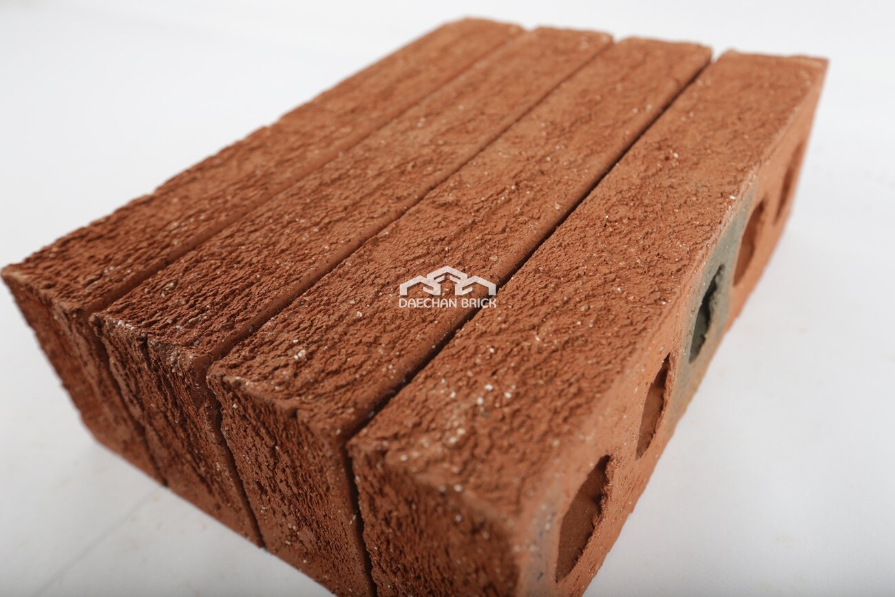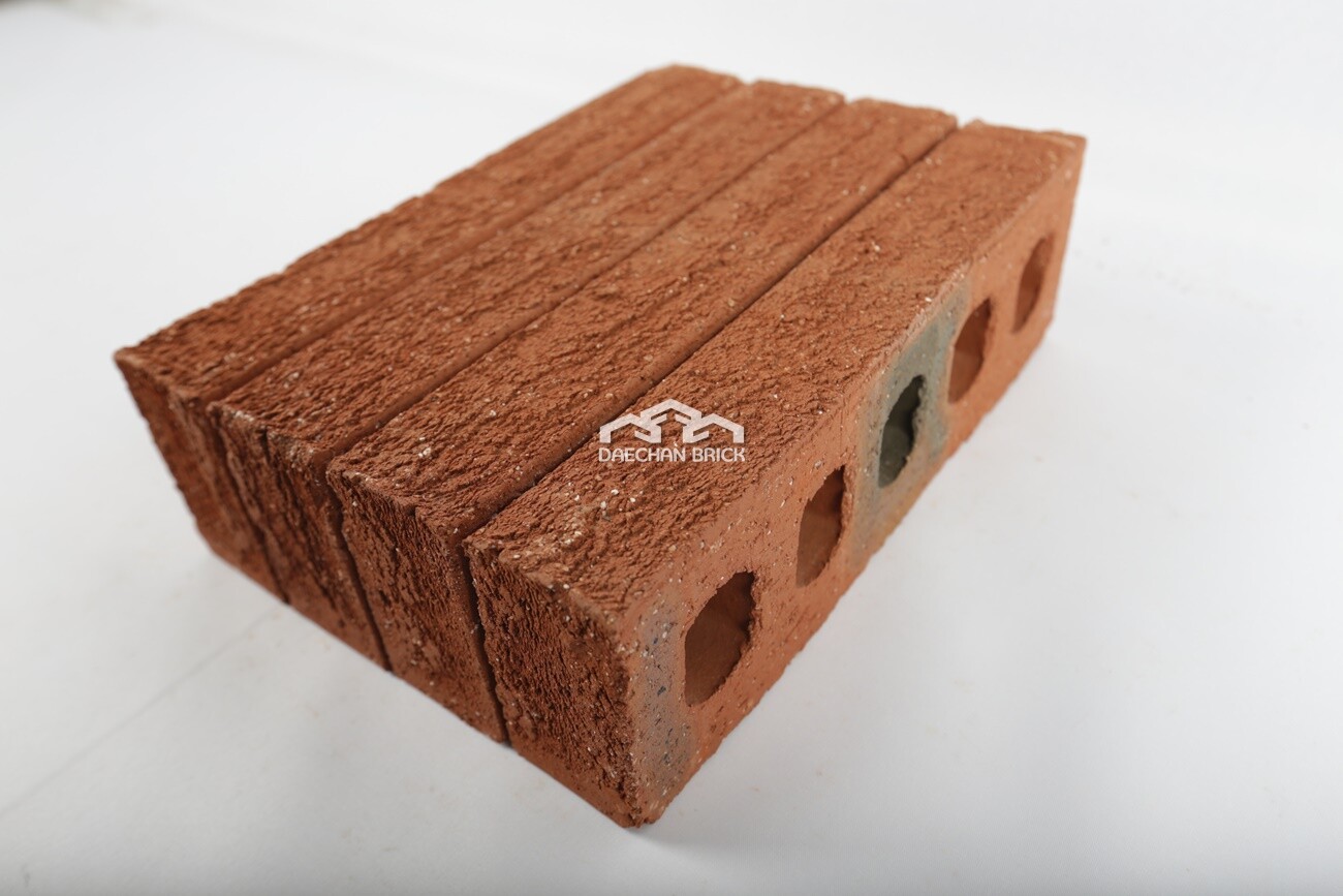 일반 토석과는 다른 거친 양음각의 질감을 미묘하게 표현한 적벽돌입니다.