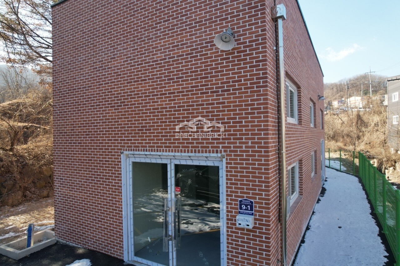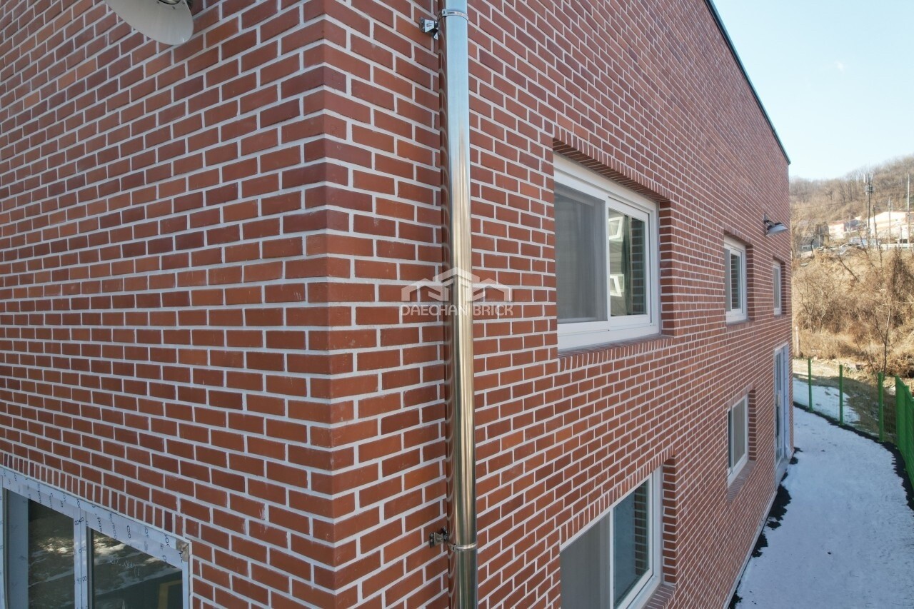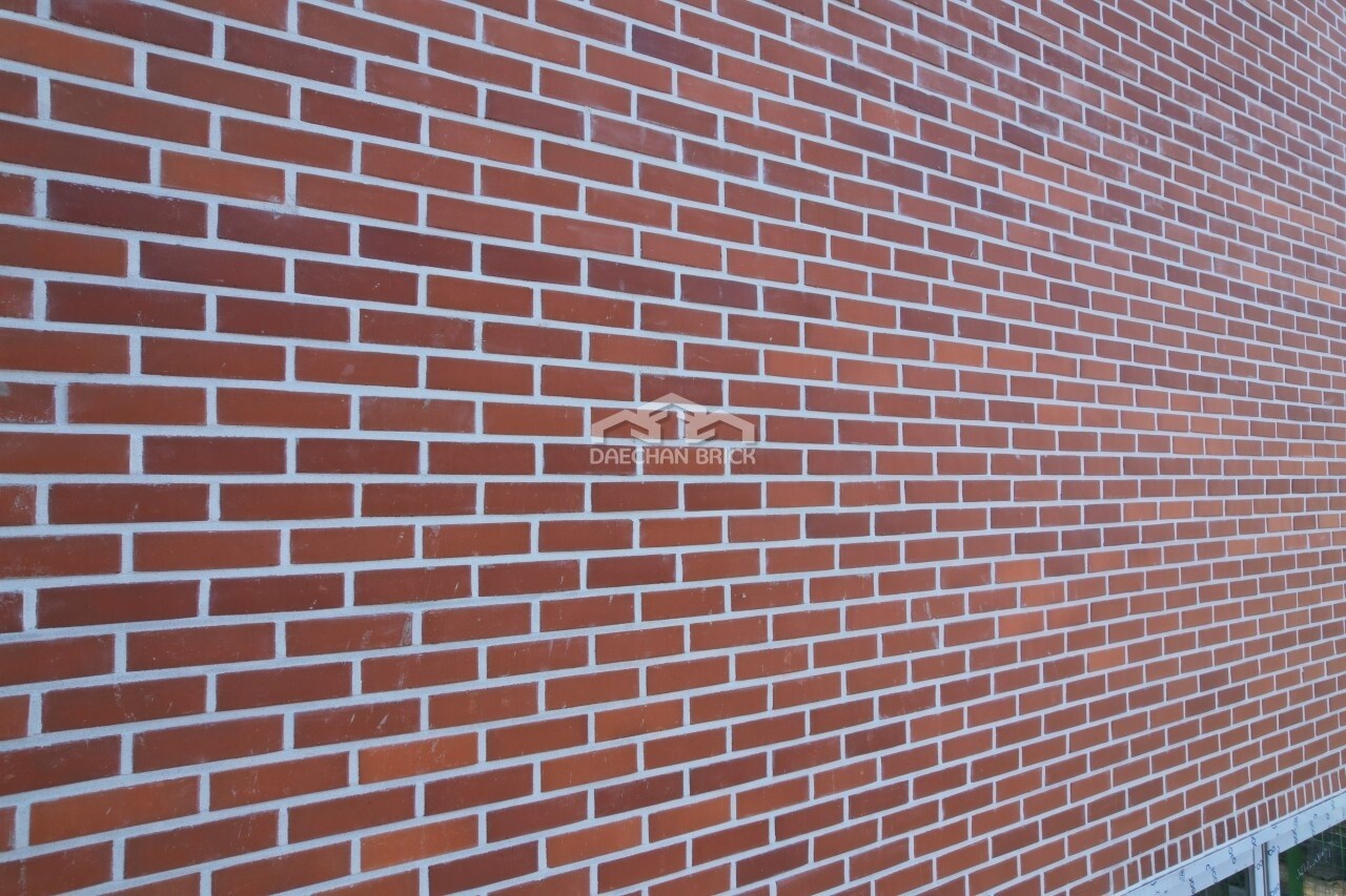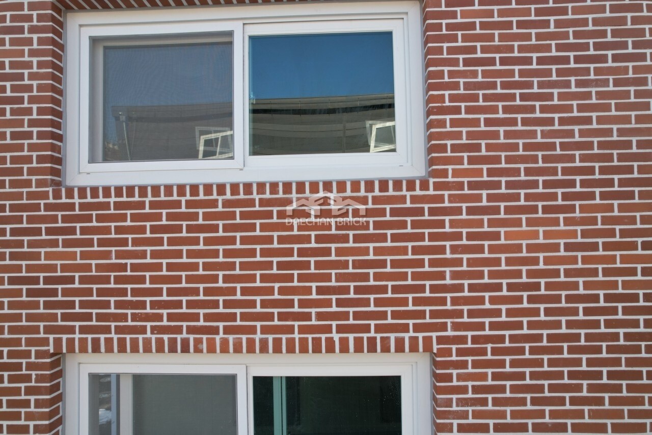적색 미장벽돌입니다. 흔하던 미장벽돌도 건축방향에 따라 웅장한 느낌을 주기도 합니다.