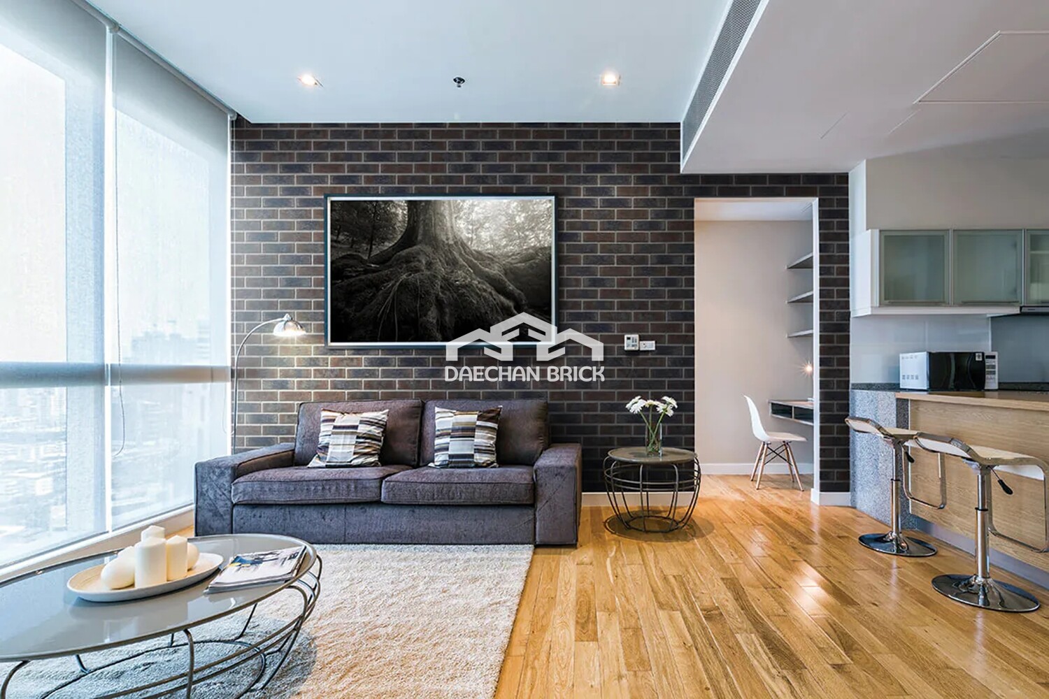 천연 클링커의 초콜릿 색조는 에보니 색상으로 포인트를 주어 더욱 진하고 어두운 톤을 표현합니다.